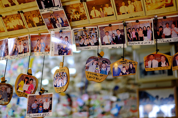 下北半島を訪れるバスは、遠くは四国からもやってくる。乗務員は何度もここを訪れ、なじみになって、写真や記念品を置いていく。何十年も続いているから、訪れる乗務員も世代交代した。