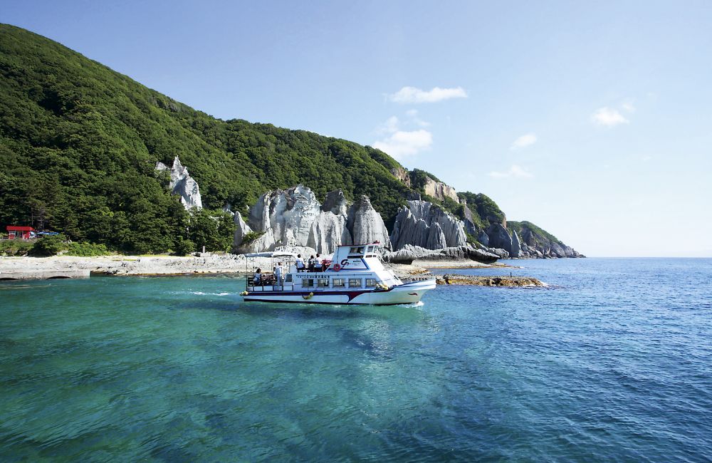 仏ヶ浦へ行くには遊覧船がおすすめです。2キロにわたって連なる大きな岩、美しく輝く海は船からしか見ることのできない絶景です。