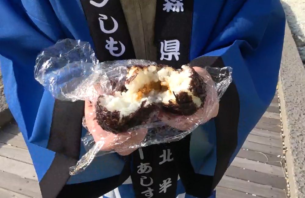 佐井村産の塩ウニと岩のりを使用した贅沢なおにぎり。4月から岩のりの在庫がなくなるまでの限定品です。津軽海峡文化館アルサスに隣接した「ちょこっと」で販売。